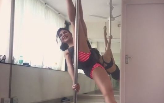 Jacqueline Fernandez, who is seen pole dancing her way to the audiences hearts with ‘Chandralekha’ has installed a pole at home to practice the dance form.