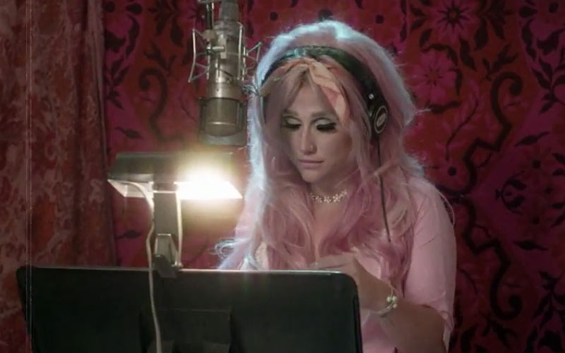 The “Rainbow” video – shot by Kesha’s brother, Lagan Sebert – takes fans inside the recording session at LA’s Capitol Studios. They see her talking with the French horn player for the session and working through the harmonies of the song’s chorus with her background singers. Kesha recorded “Rainbow” live to tape with musicians including producer Ben Folds on piano and a string orchestra.