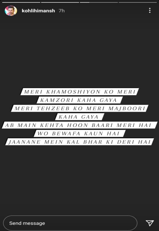 Himansh Kohli’s cryptic messages