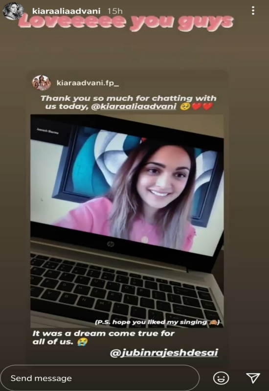 A fan sang Jab Tak from MS Dhoni, which impressed Kiara Advani so much that she wishes her to turn a playback singer for the actress someday. The actress also sang her favorite songs from her movies along with her fans.
