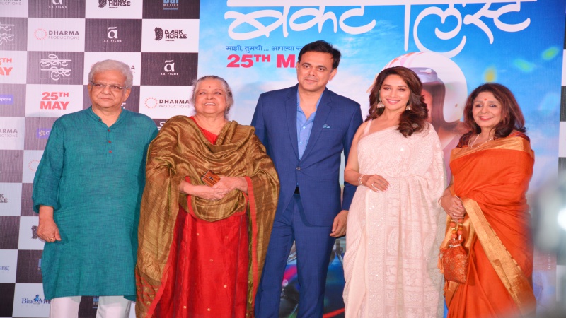 Bucket List Trailer launch 4 Date: May 5, 2018Author: Kajal Wilben 0 Comments Pradeep Velankar, Shubha Khote, Sumeet Raghavan, Madhuri Dixit-Nene and Vandana Gupte at Bucket List Trailer launch